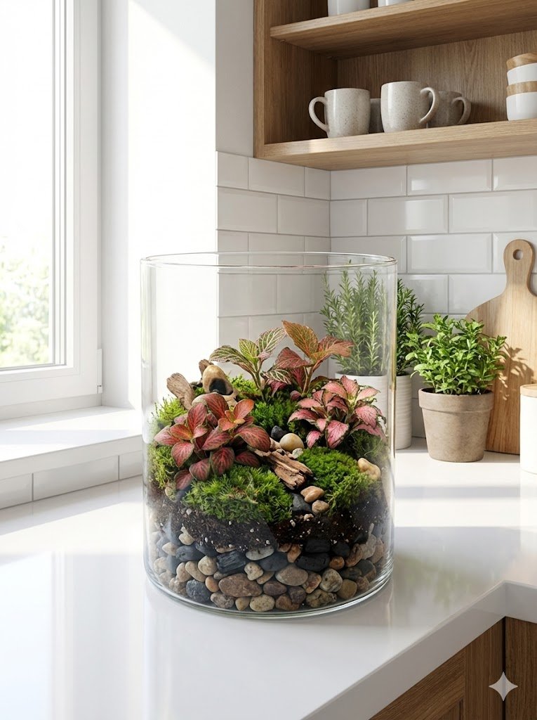 زجاج اسطواني عريض\طول 28سم \عرض 17سم لتصاميم التيراريوم والنباتات المائيه
